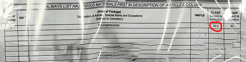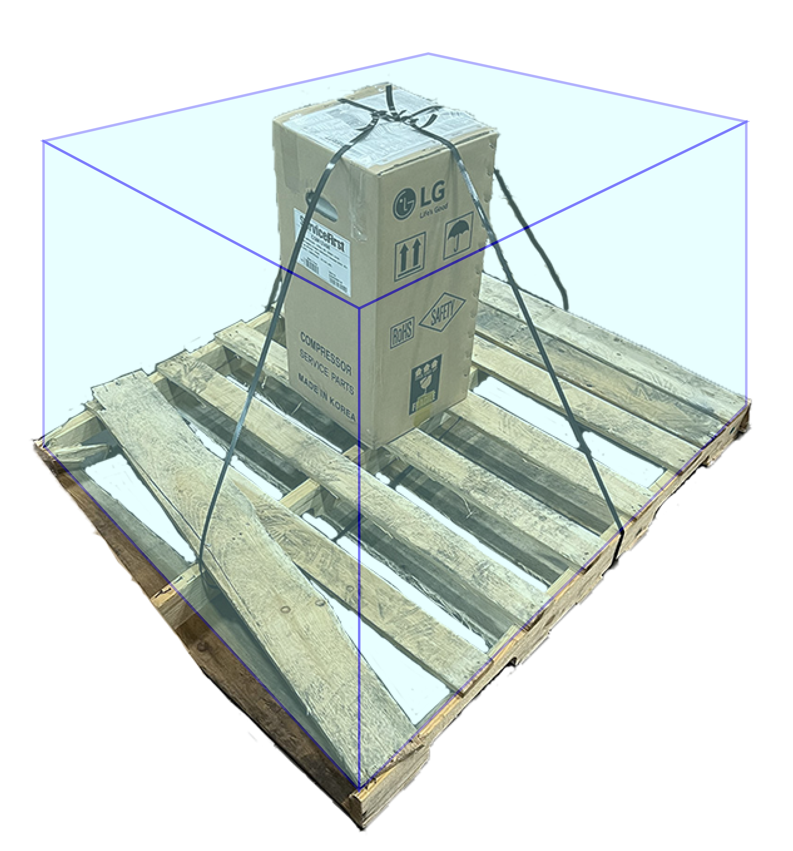 In the current NMFC model, this shipment comes in at a freight classification of 50. Using dimensions of just the brown box (12”x12”x26”), it would be class 70. Since it is strapped on a much larger pallet (40"x48"x4") the freight class jumps up to 400! If the product cannot be shipped as a parcel for need to keep it vertical, use a pallet of 18”x18” at a lower cost for the customized pallet rather than much higher shipping charge to the carrier for using a much larger pallet.